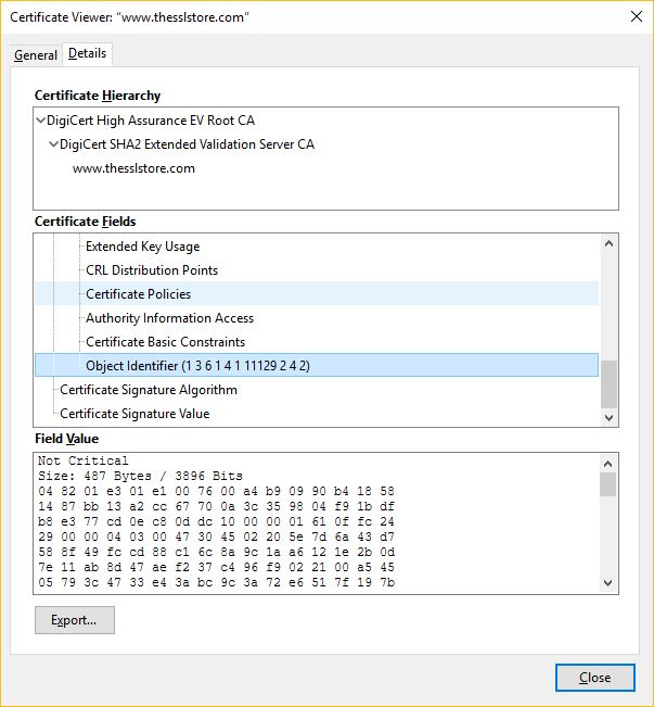 证书透明度是一个行业的事情,最终用户无需做任何事情来记录自己的证书。 CA必须这样做。 但是,有两种方法可以检查并查看是否已记录您颁发的SSL证书。 第一种方法是检查浏览器中的证书详细信息。